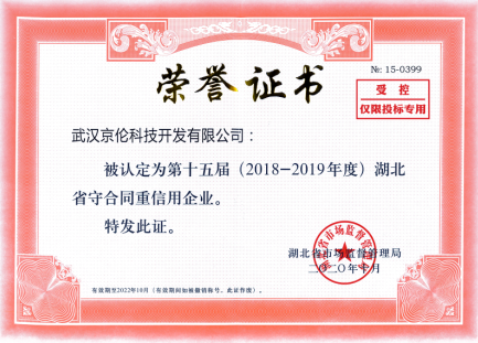 k8凯发国际科技湖北省第十五届(2018-2019)年度“守合同重信用”企业荣誉证书