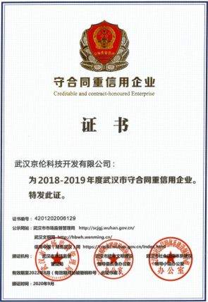 武汉市“守合同重信用企业”荣誉证书