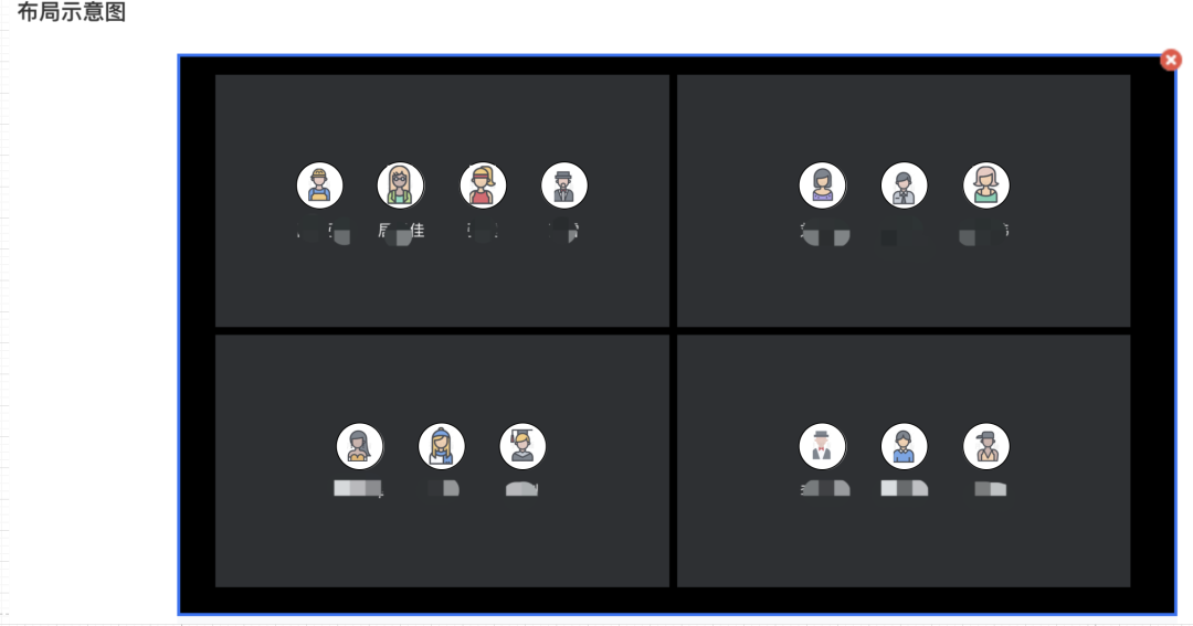 如上图中每个格子中设置了指定的与会成员,被选择的与会成员的视频画面将按照顺序定期出现在对应画面空格中。其他未被选择的成员则不会出现。