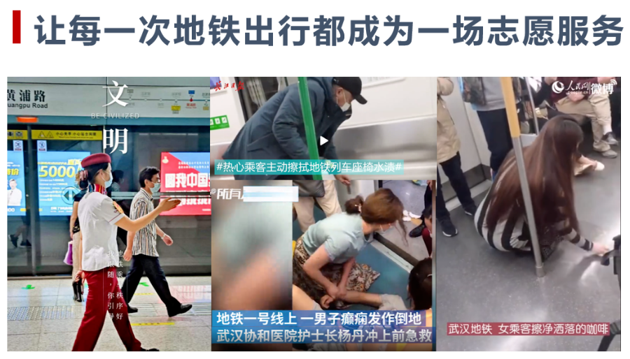 2015年底,武汉地铁运营公司以“提升地铁车厢的文明指数”为出发点,面向社会广泛招募乘客志愿者,并探索性启动了“文明地铁,爱心伴乘”项目。